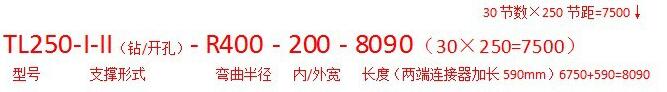 拖鏈節(jié)距TL250,支撐板形式III型,彎曲半徑R=400,支撐板寬度1000,拖鏈長度L=2500
